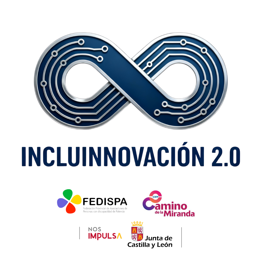 El logotipo de INCLUINNOVACIÓN 2.0 representa un símbolo de infinito, metáfora de la conexión continua entre innovación y compromiso social. Cada uno de sus extremos fusiona los valores del CIFP Camino de la Miranda y de FEDISPA, mostrando cómo la tecnología puede ser una vía para construir una Formación Profesional más inclusiva, creativa y humana. Su diseño refleja el espíritu colaborativo del proyecto: aprender haciendo, compartir conocimiento y transformar el entorno desde la educación.